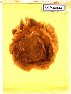At the apex there is a large necrotic area surrounded by a hyperemic edge.
