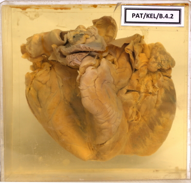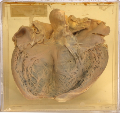 Thinned out papillary muscle and the wall of the left ventricle most marked towards the apex.