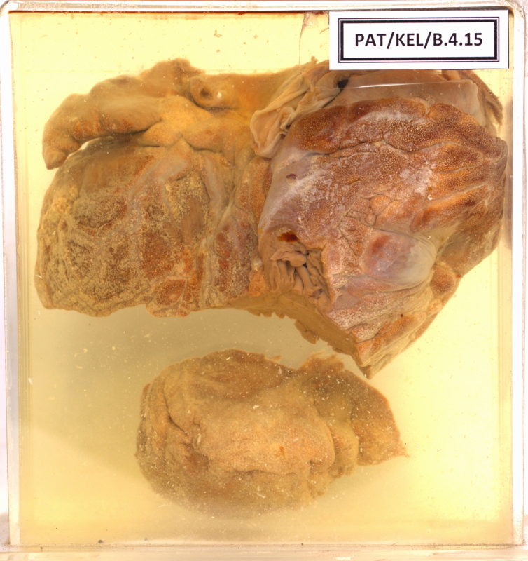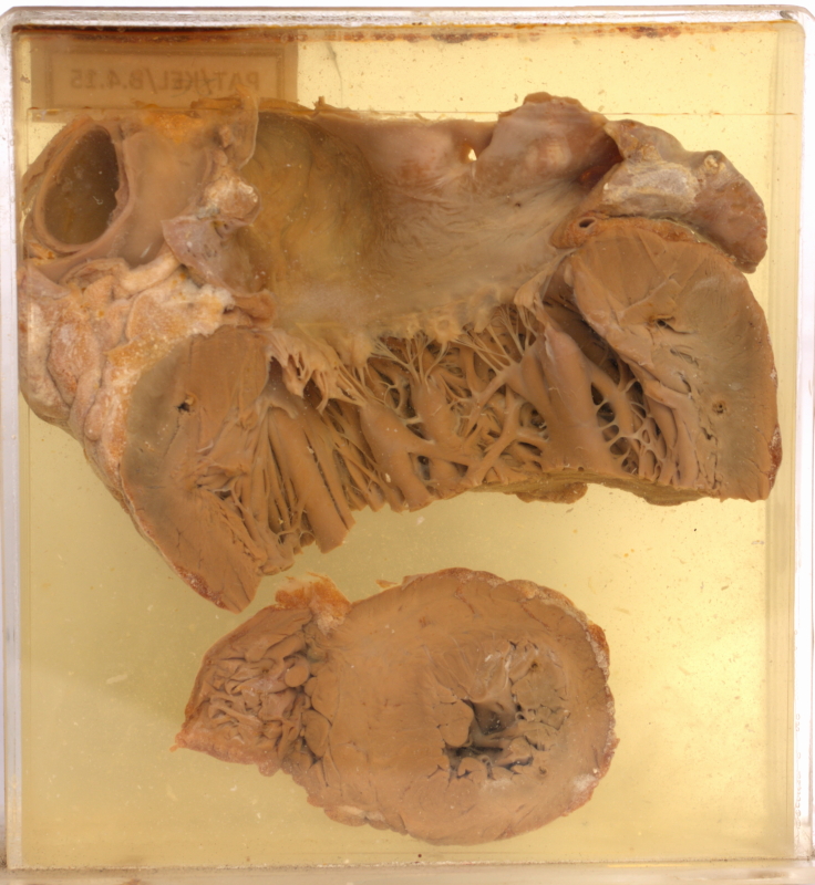 - A transverse section from the same specimen shows hypertrophy of the interventricular septum causing obstruction to the ventricular cavity.