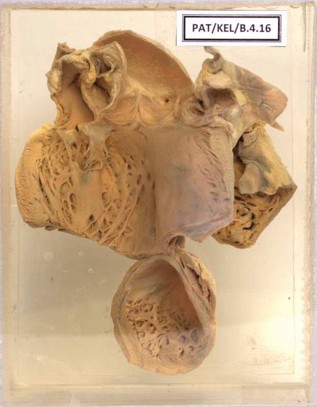 - The left ventricle and the beginning of the aorta, part of the left atrium are opened.