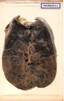 - The cut surface shows the left lung with the hilum containing pulmonary blood vessel and bronchi.