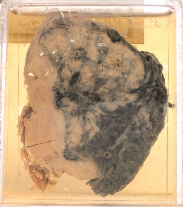 A solid looking pinkish tumour in the lung.
