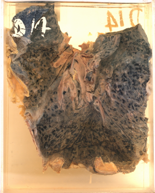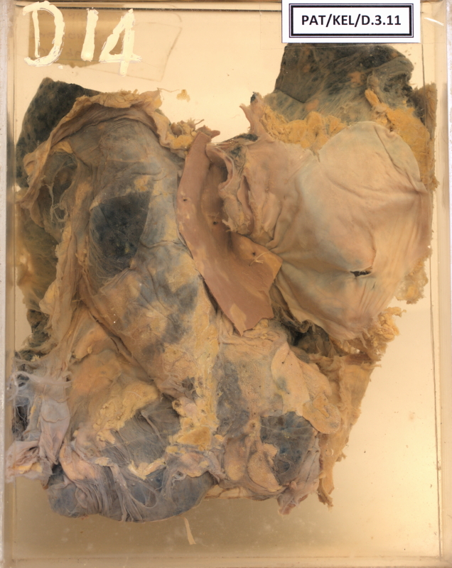 Diffuse white streaky areas in a lace-like pattern are seen.