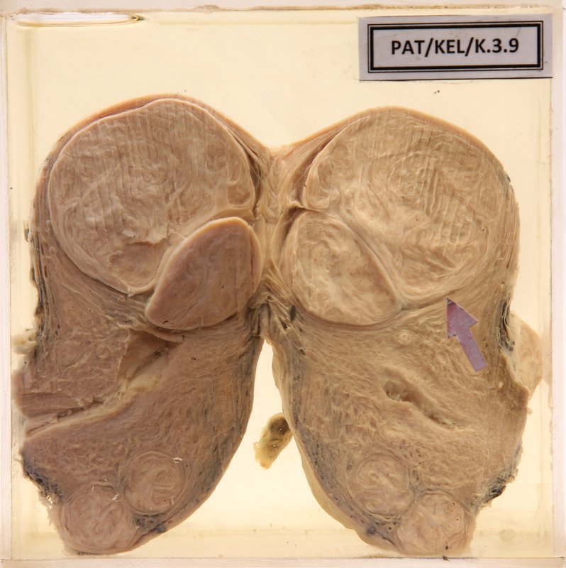 The uterus show several intramural and subserosal tumours with whorled appearance.