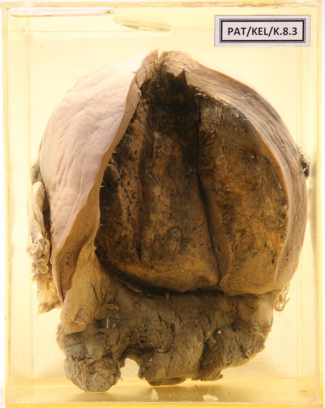 - A dark subserosal haemorrhagic patch is seen in the middle left on the body of uterus.