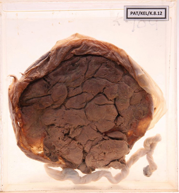 Peripheral attachment of the umbilical cord to the placental tissue.