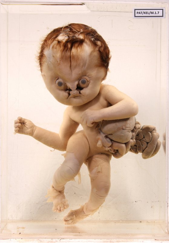 There is gastroschisis with abdominal wall defect showing through which the abdominal organs have protruded.