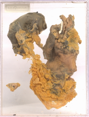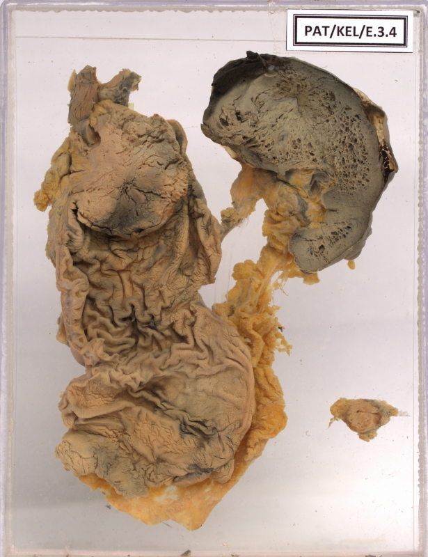 - Specimen of lower end of oesophagus, cardiac end of stomach, celiac lymph node, omental node and spleen.