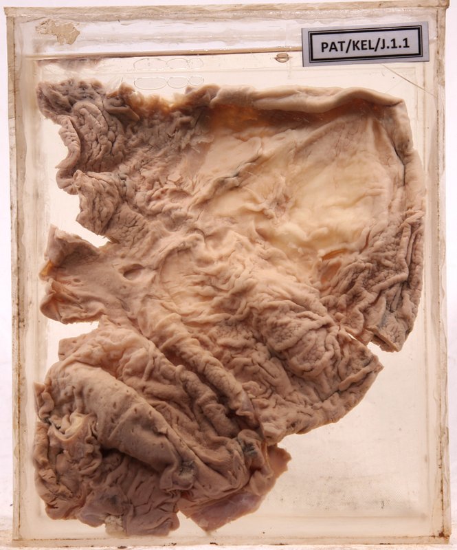 - This is a specimen of a portion of stomach wall.