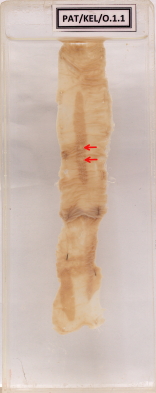O.1.1 Typhoid ulcers in ileum