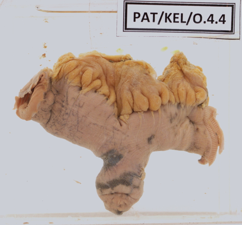 Specimen of the section of small intestine showing a sac- like projection in line with the anti-mesenteric border.