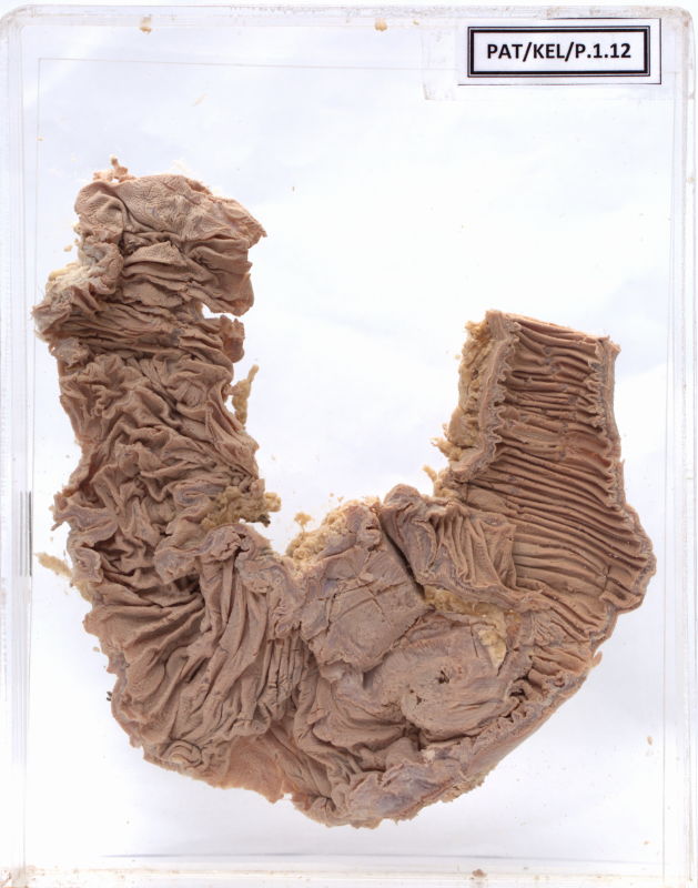 - The specimen contains a small segment of ileum, caecum and ascending colon.