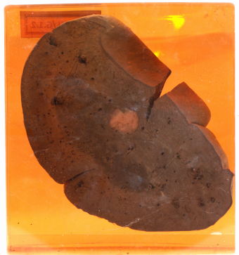 - There is a pale white mass embedded in the splenic tissue.