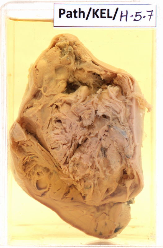 - The tumour is circumscribed and the cut surface is irregular and homogenous in appearance.