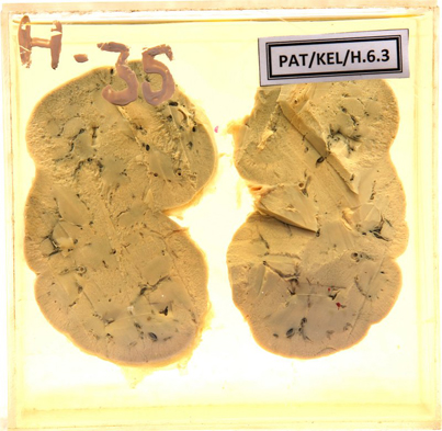- This is an enlarged kidney opened longitudinally.