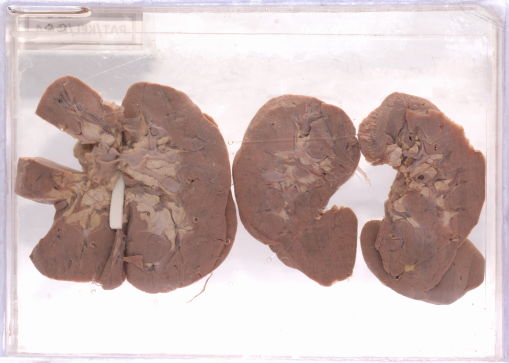 - Both kidneys are sectioned longitudinally.